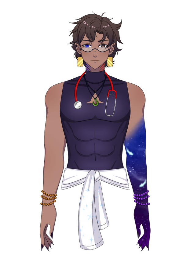 Wayward doctor of the Astral Sea. Originally a sawbones for a ne'er-do-well crew, before bringing the ire of the Great Sky Shark of the Astral Plane took claim to all but him leaving him stranded out in space. Drifting on his own, he now spends the time recording the many games and interests his former crew once did.